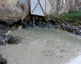 La marea baja permitía ver perfectamente el origen del mal olor: un charco de agua marrón y espesa que discurría hacia el mar. Del aliviadero aún manaba un hilo de líquido, aunque parecía evidente, por los restos en las piedras, que minutos antes el caudal del vertido era más intenso.